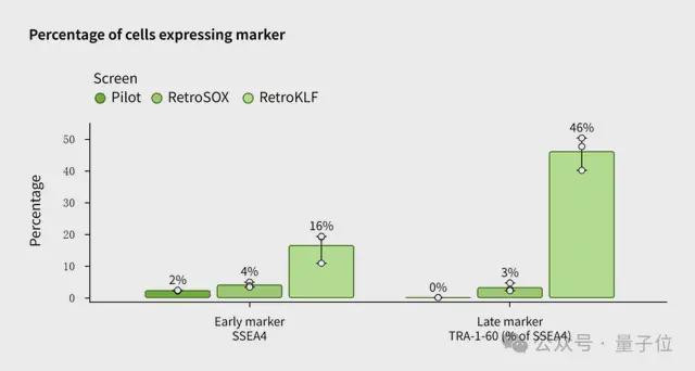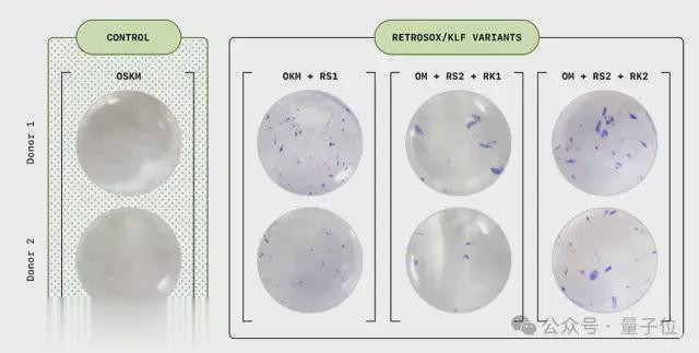Retro团队利用人类成纤维细胞(皮肤与结缔组织)构建了湿实验室筛选平台,在初步验证阶段,该团队通过手动设计的基准OSKM和SOX2变体进行试点筛选。