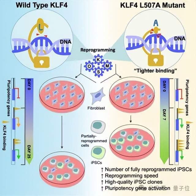 研究团队随后着手改造山中伸弥因子中体积最大的KLF4蛋白。虽然已知可用其他KLF家族因子替代KLF4,但重编程效率并未提升。